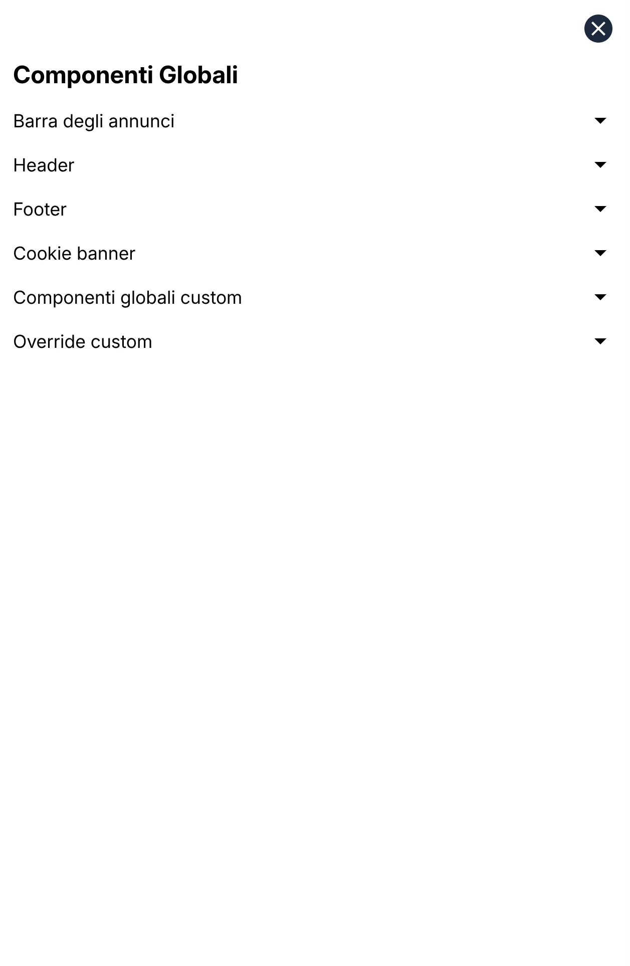 Allows you to manage the insertion or removal of the site footer. This section is particularly useful for restoring the footer or its internal canvas if they are accidentally removed during editing.
