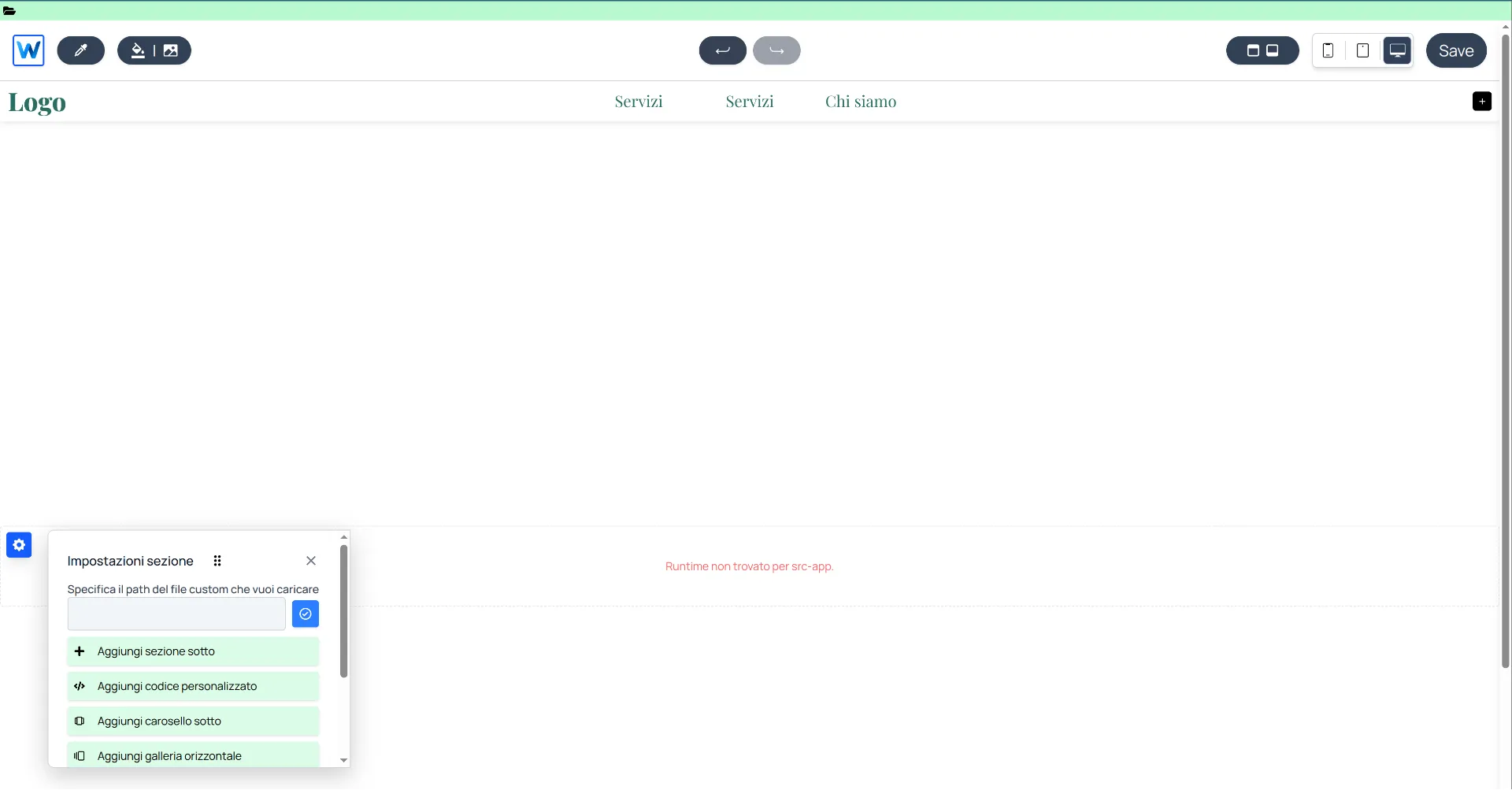 Sei entrato nell'editor di codice custom di Webround