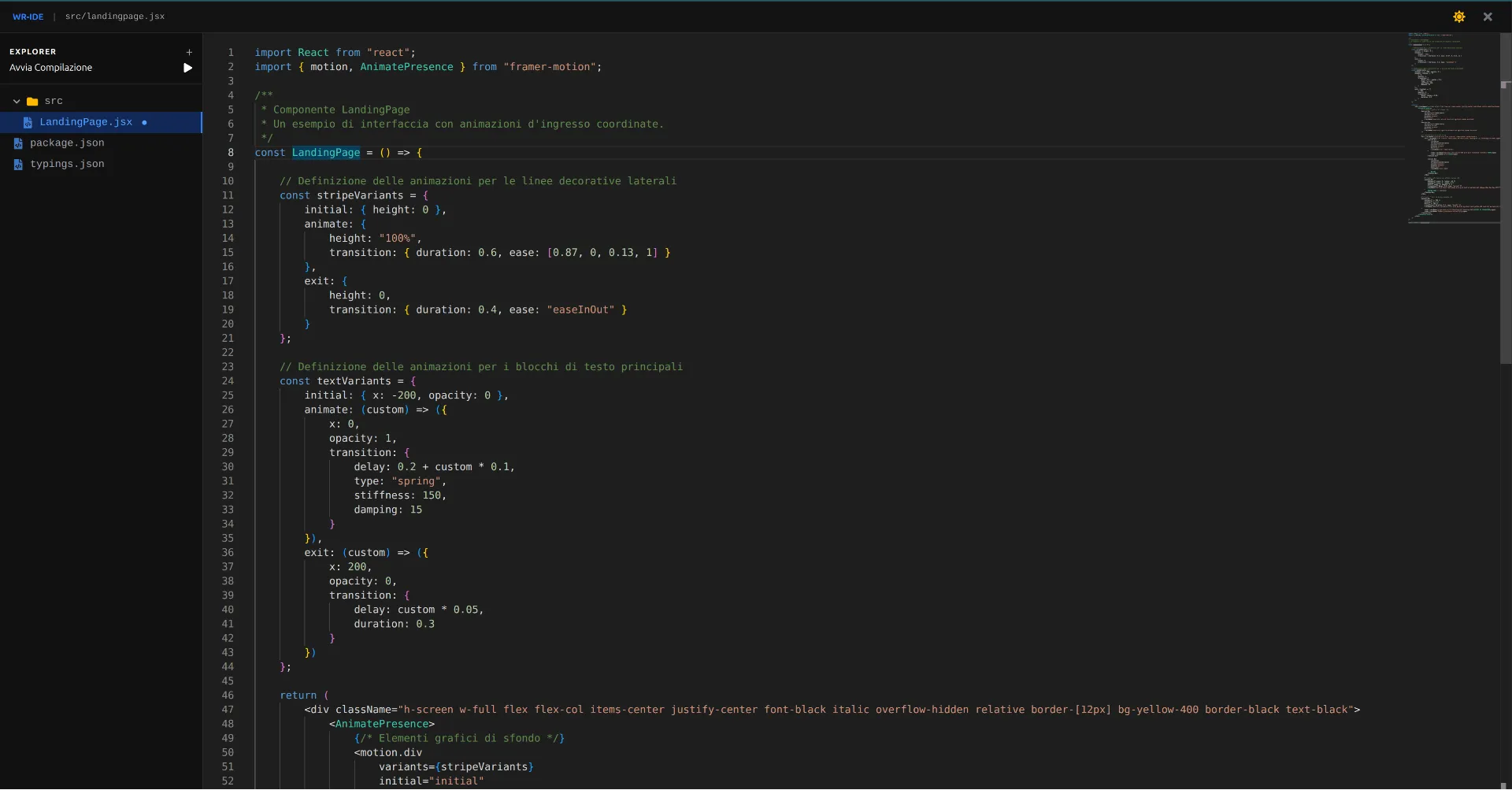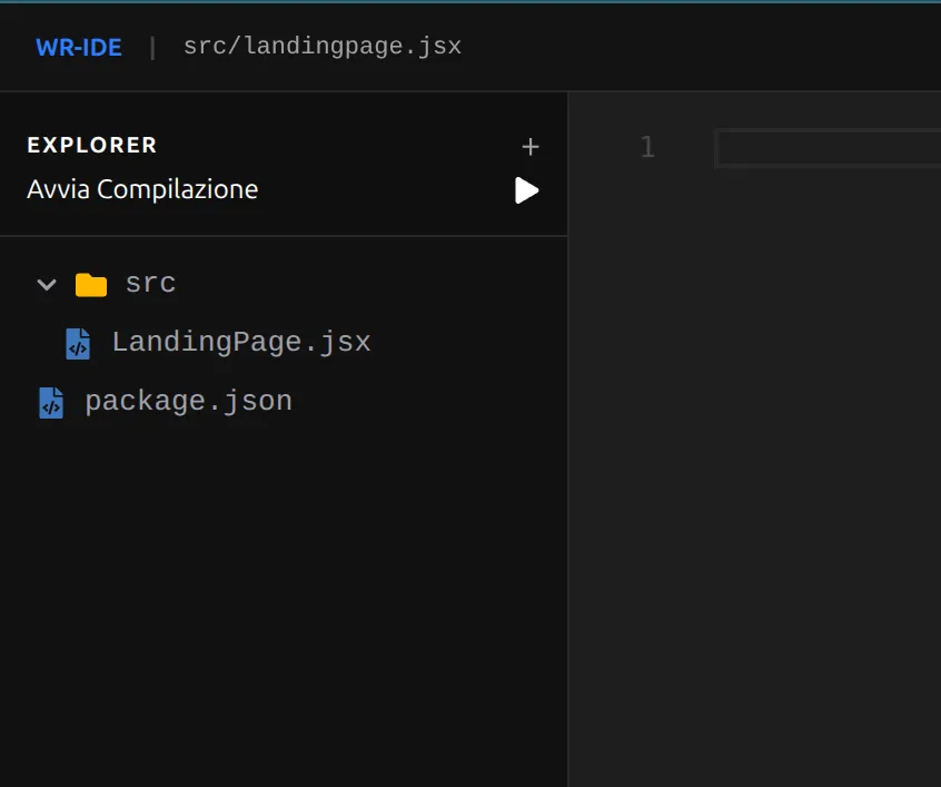 Dopo aver costruito questa struttura, seleziona il file LandingPage.jsx e incolla il seguente codice React: